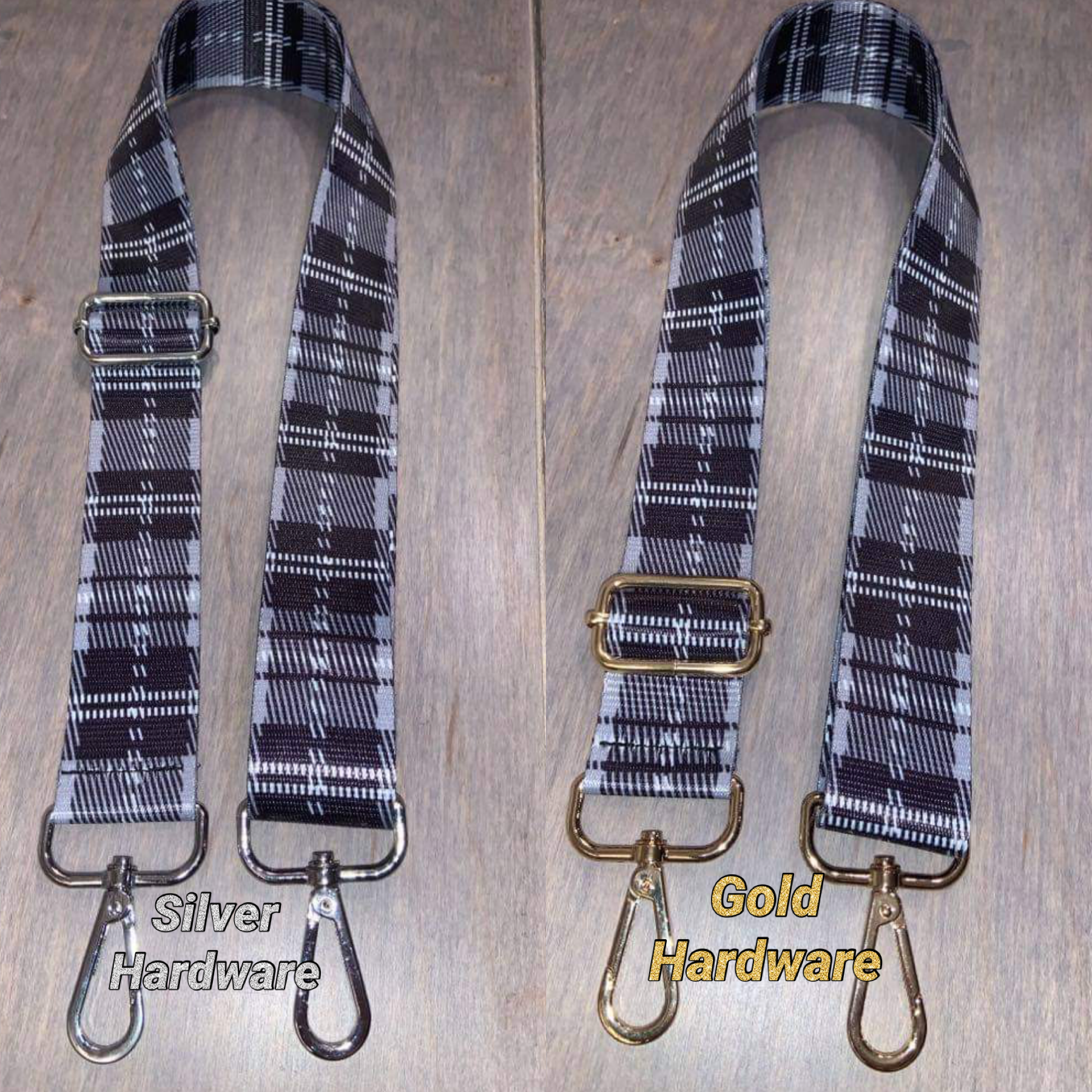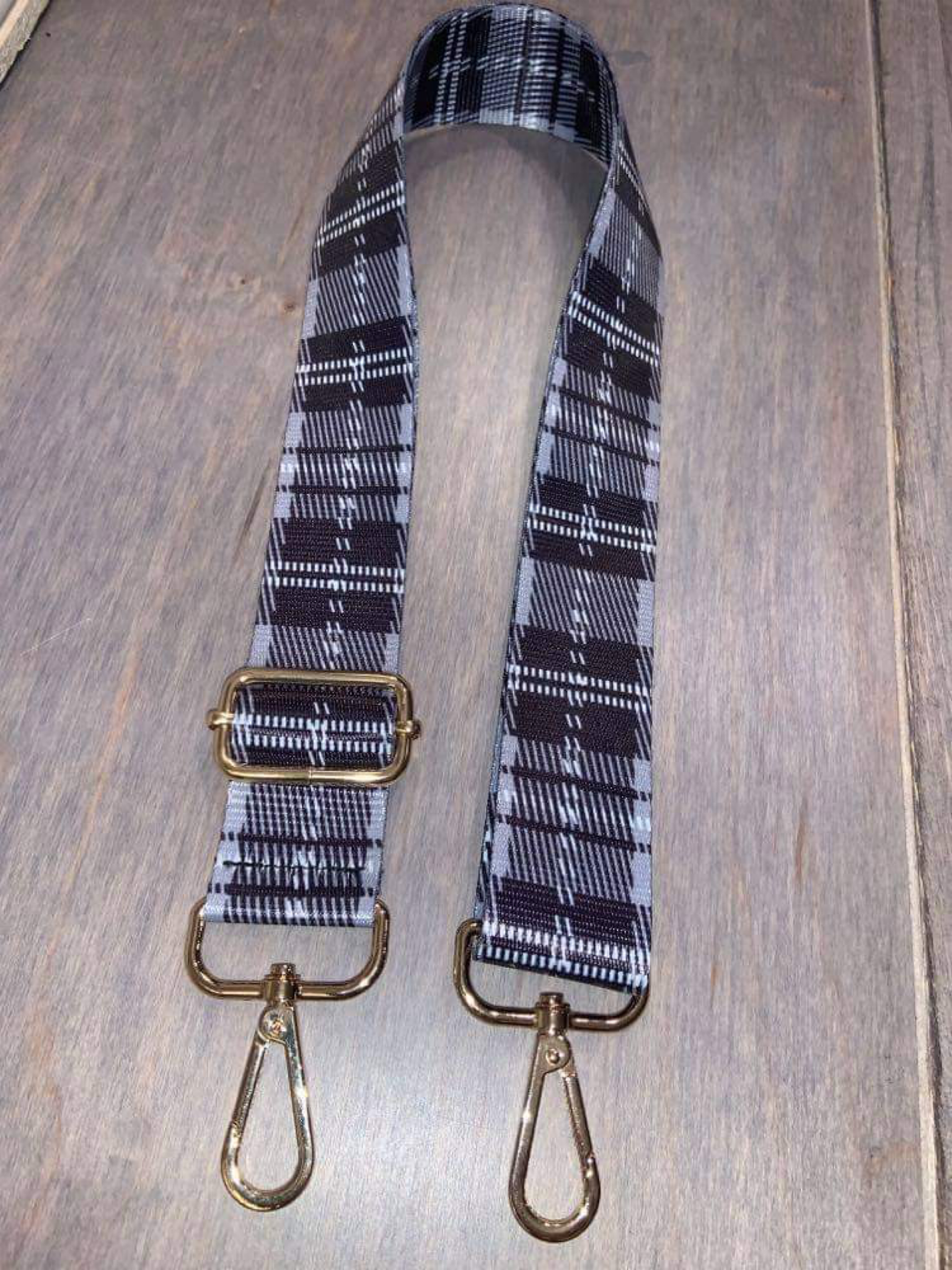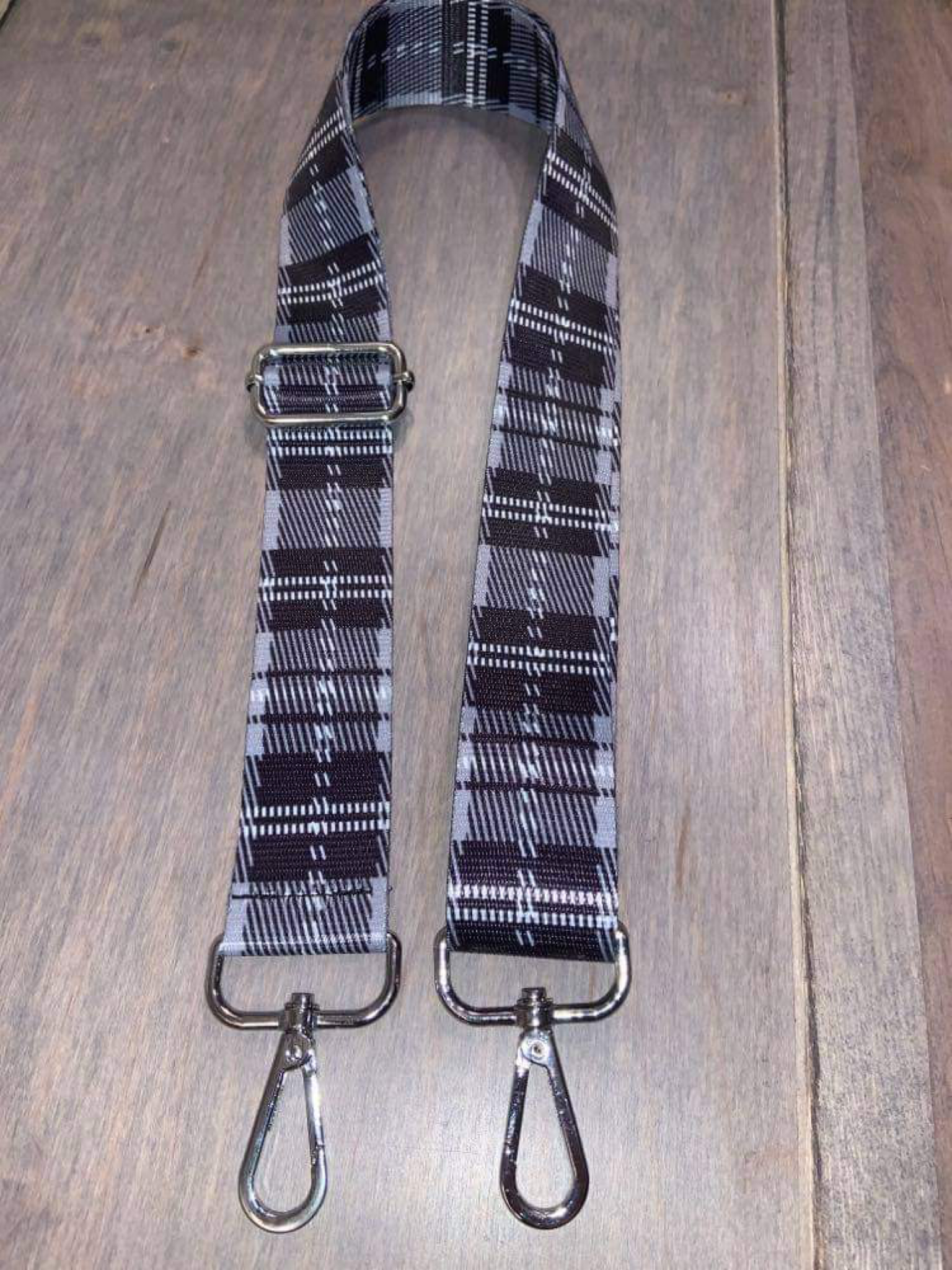 Grey Plaid Adjustable Bag Strap