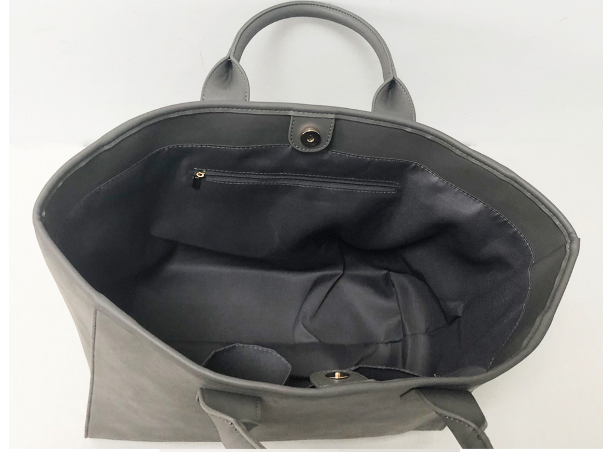 Snap closure. One interior zipper compartment and two interior storage pockets