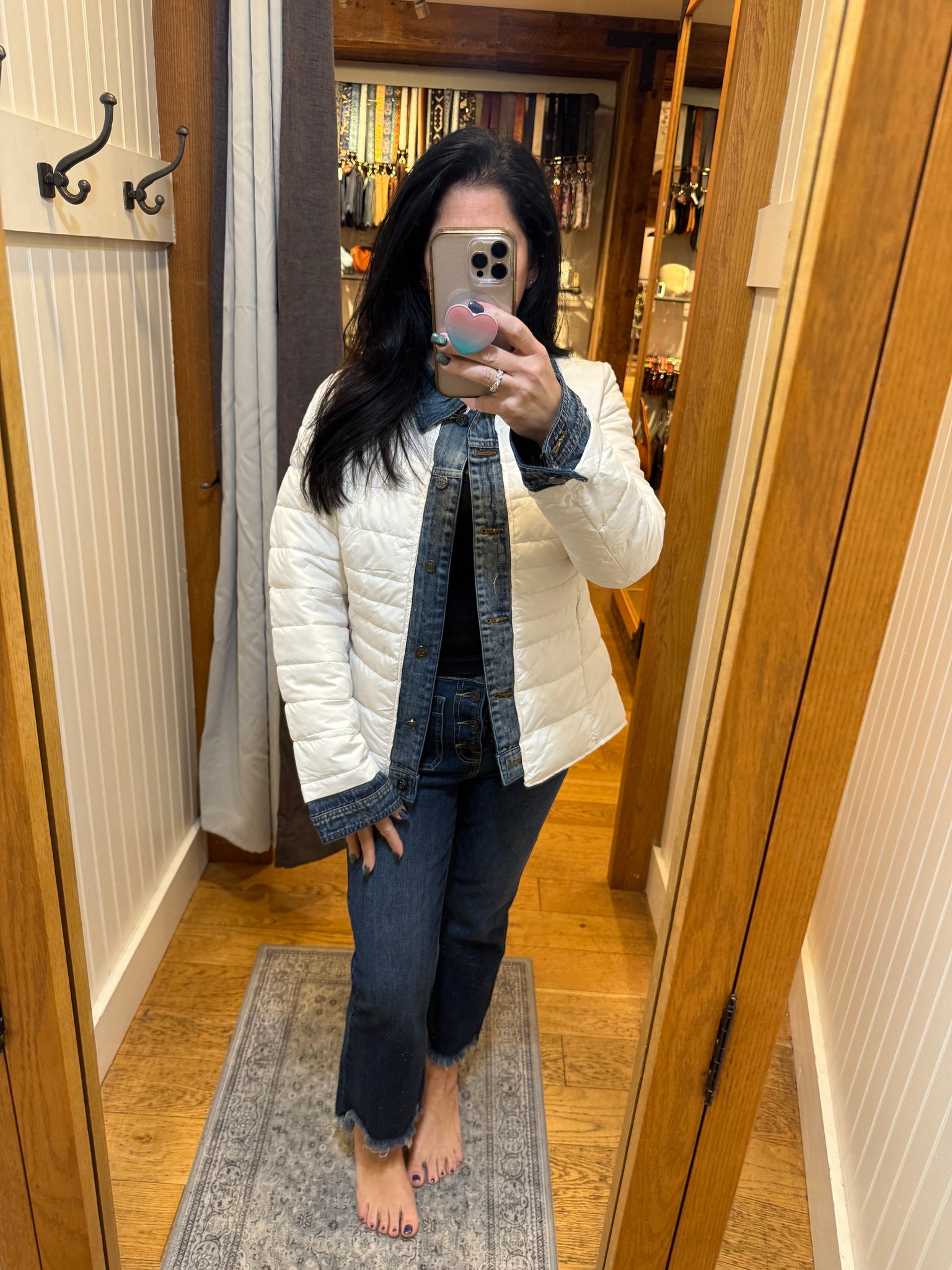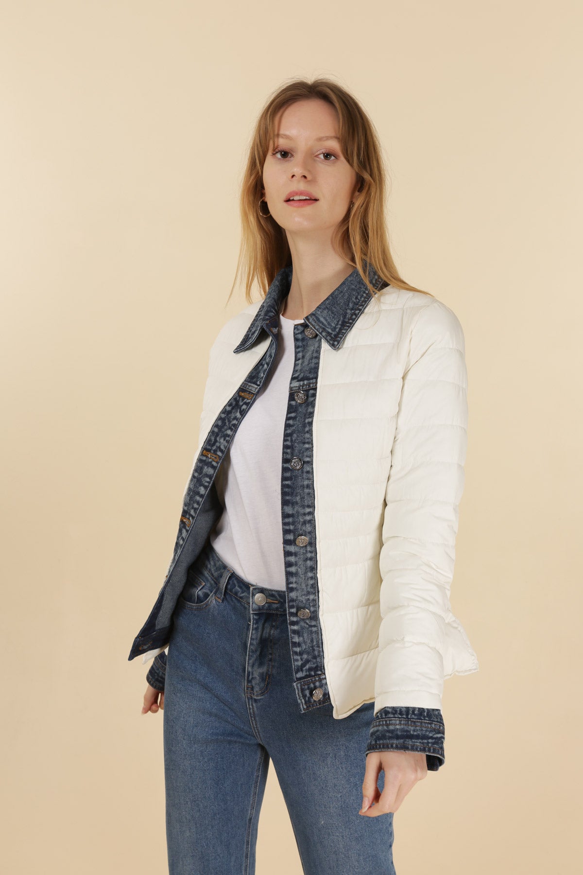 Kenza Two-Material Denim Puffer Jacket - Black or White