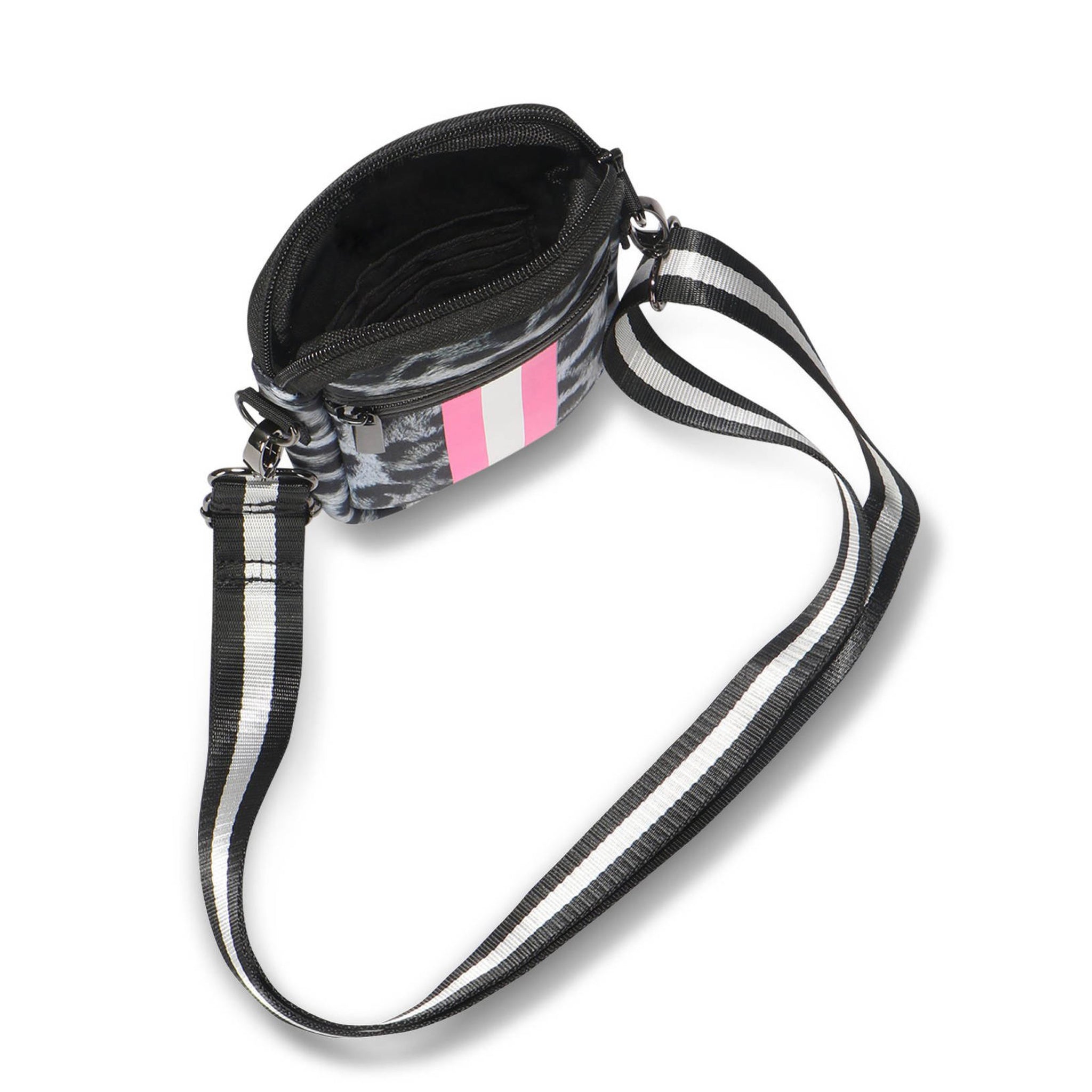 GREY/BLACK/PINK LEOPARD ZIPPER NEOPRENE PHONE HOLDER W/1.25" STRAP