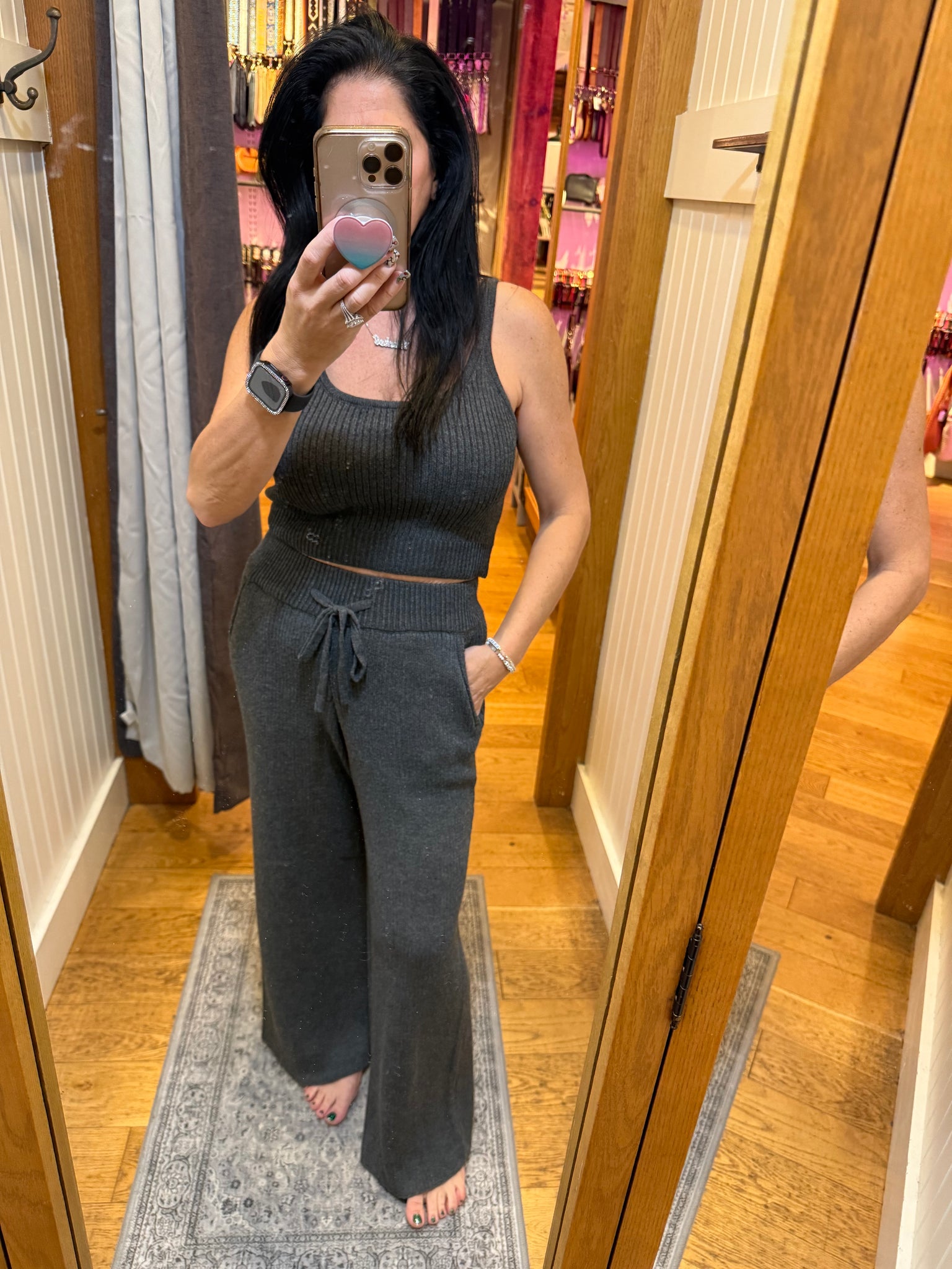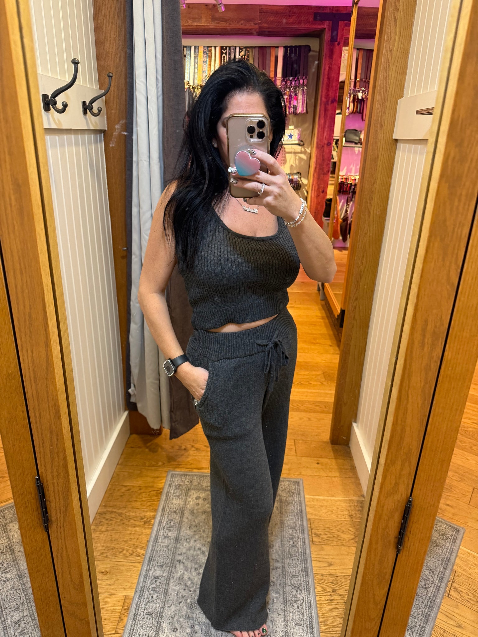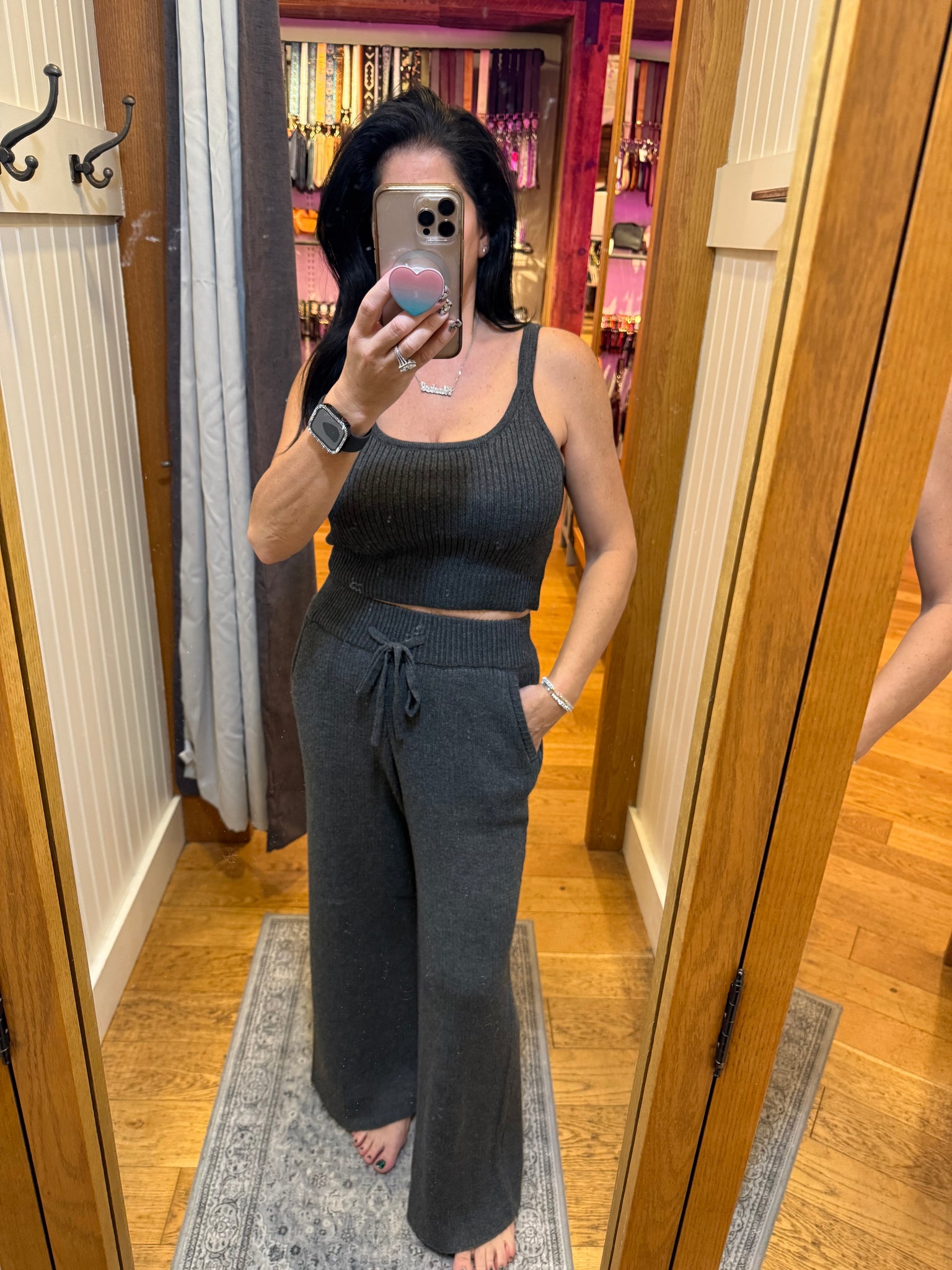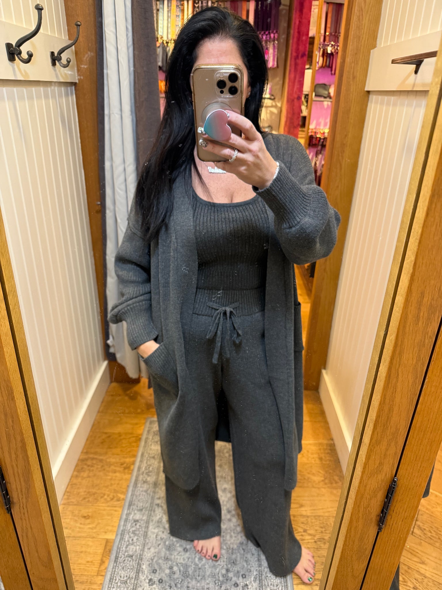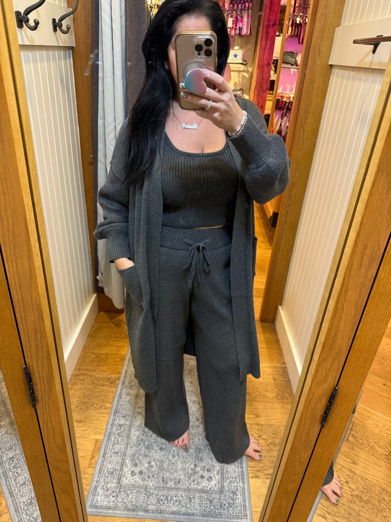 . So soft and cozy! pants run big. I am wearing size small.tank and cardigan sold separately
