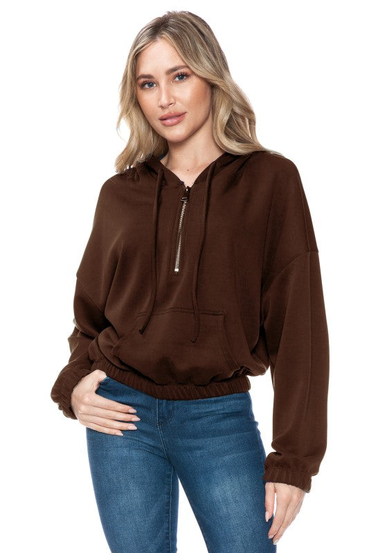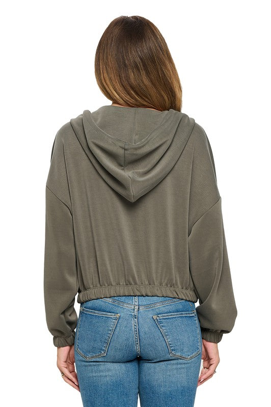 Ariella Cropped L/s Hoodie W/ Zipper - Brown or Olive