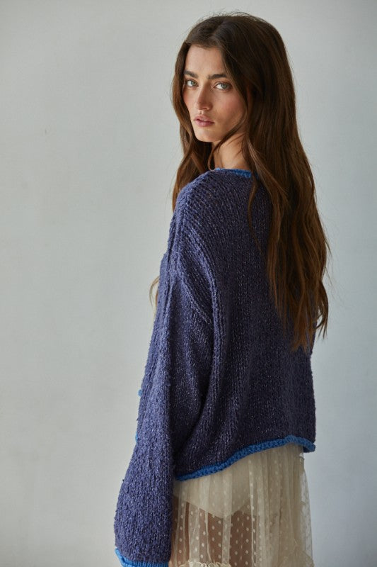 Knit Sweater Cotton Acrylic Polyester Scoop Neck Long