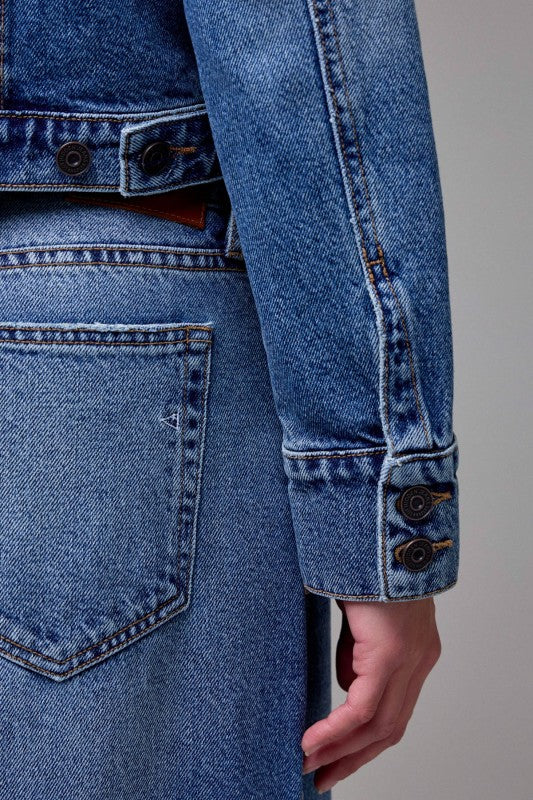 Hidden Medium Pearl Embellished Fitted Trucker Jacket - Embellishment Blue