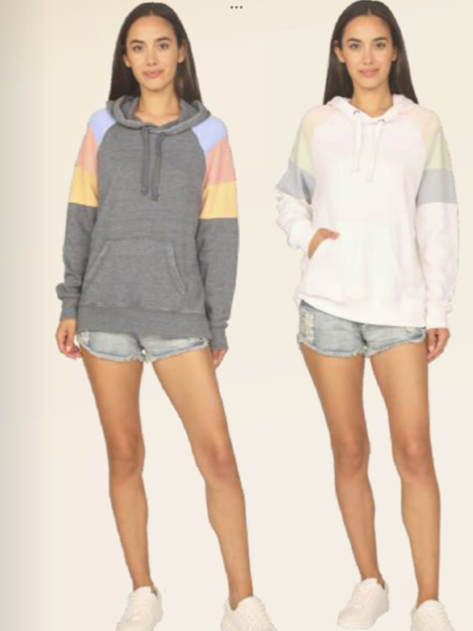 OCEAN DRIVE TIDEWATER GREY OR WHITE W/ MULTI STRIPES BURNOUT COLORBLOCK HOODIE