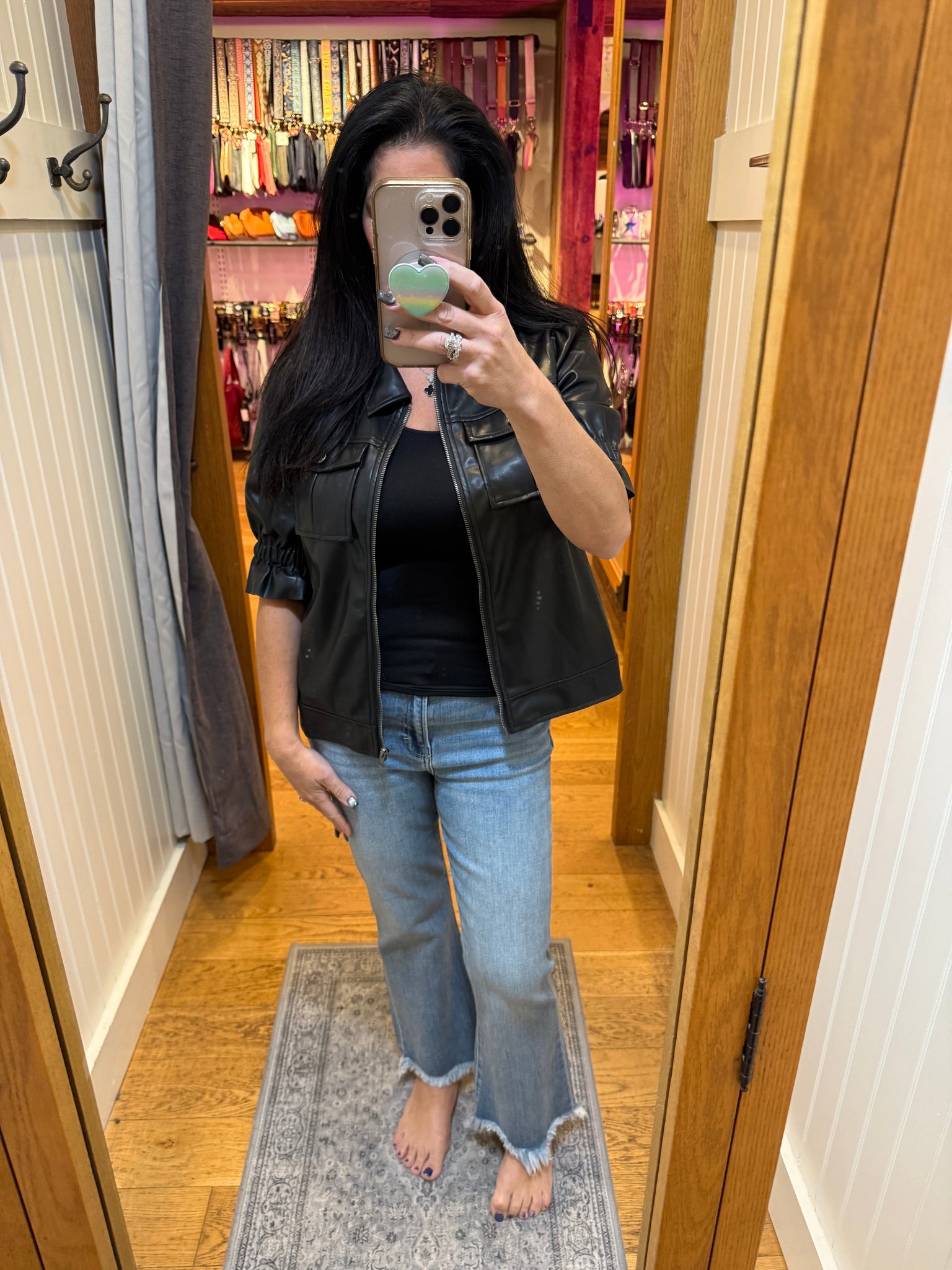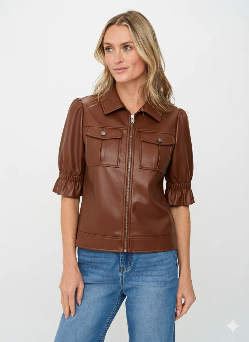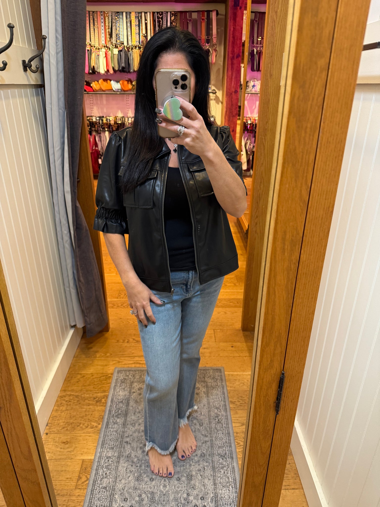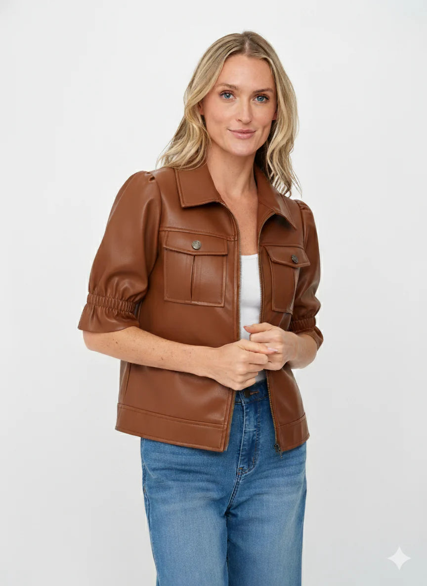 Get ready to be chic and stylish with our Jennifer Jacket! This leather jacket features a button front pocket detail, making it both practical and fashionable plus adds a little edge to any outfit. Don't miss out on this must-have piece!