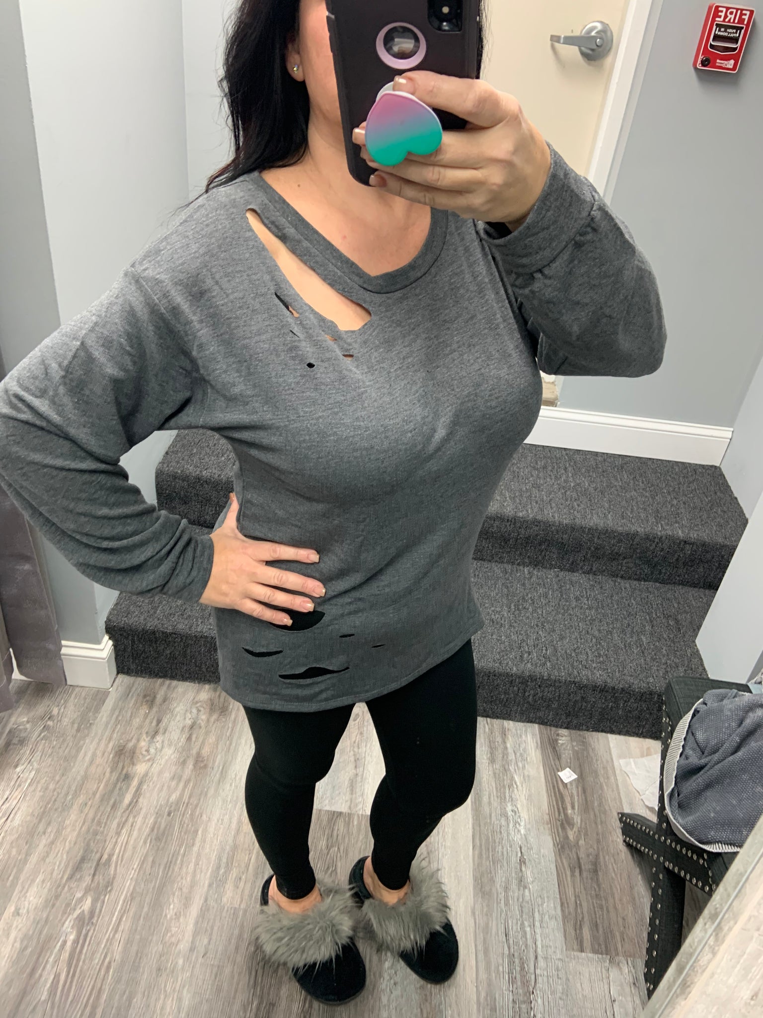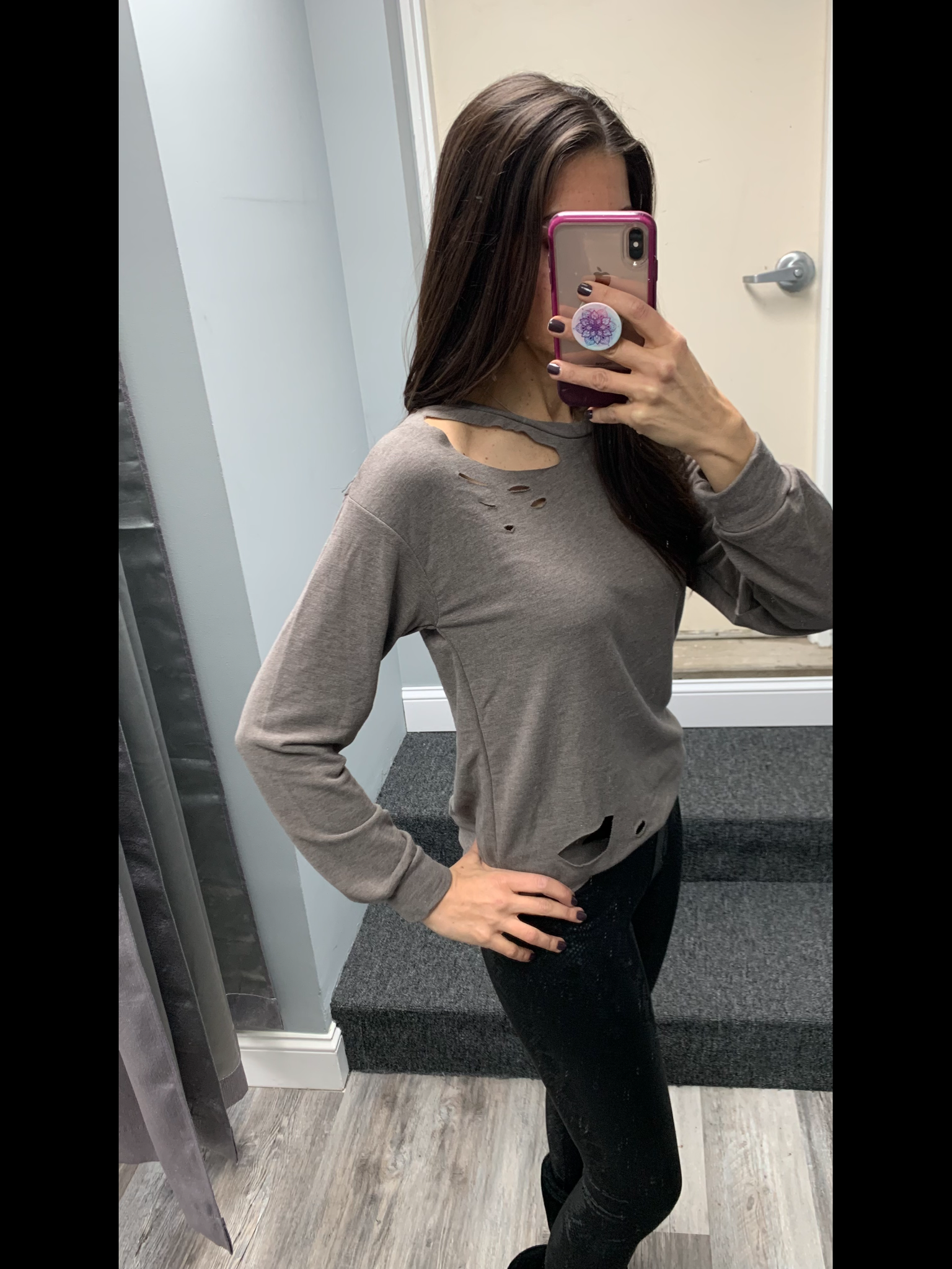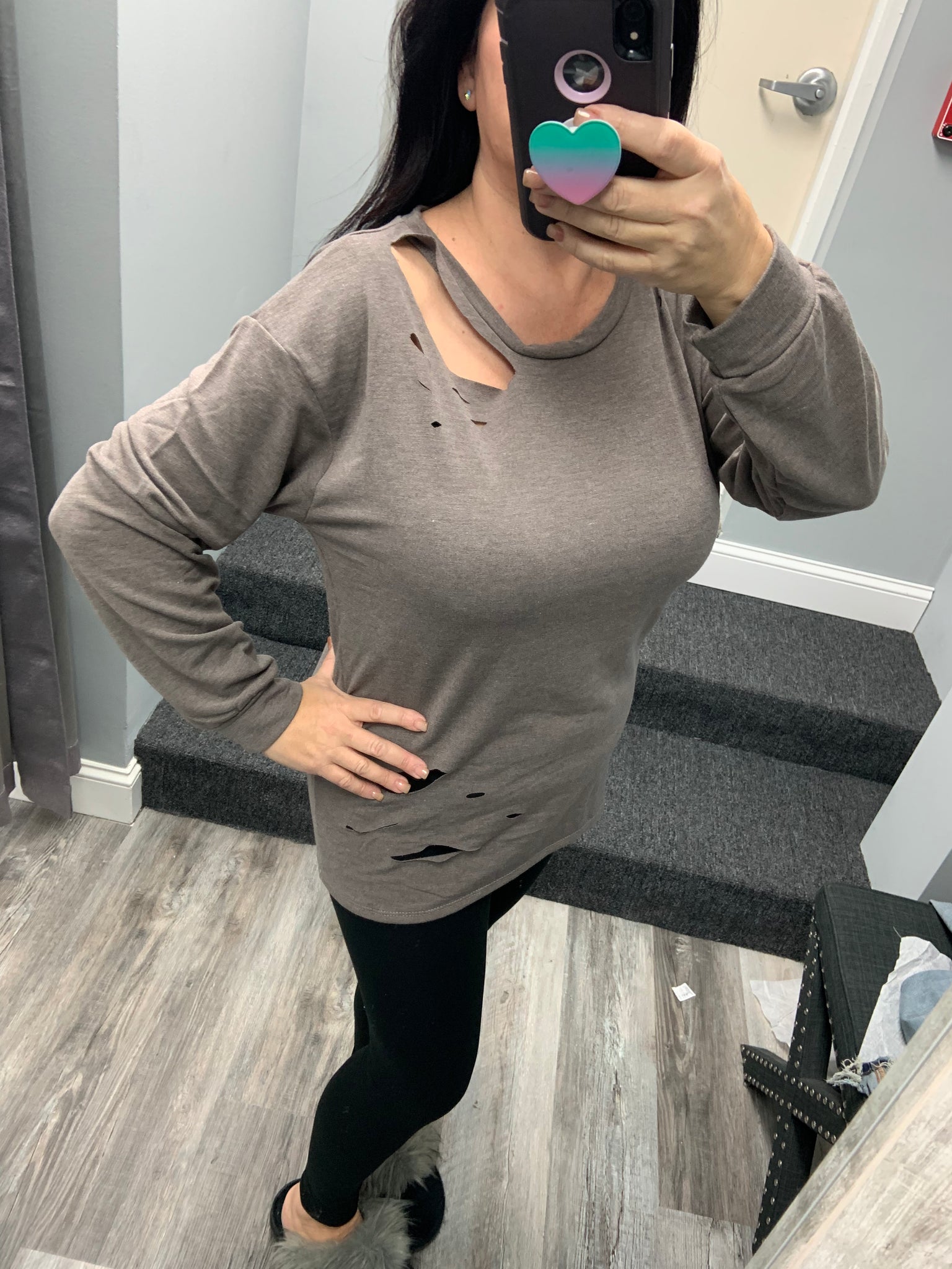 TERRY PULL OVER WITH LASER CUT DETAIL - CHARCOAL or MOCHA
