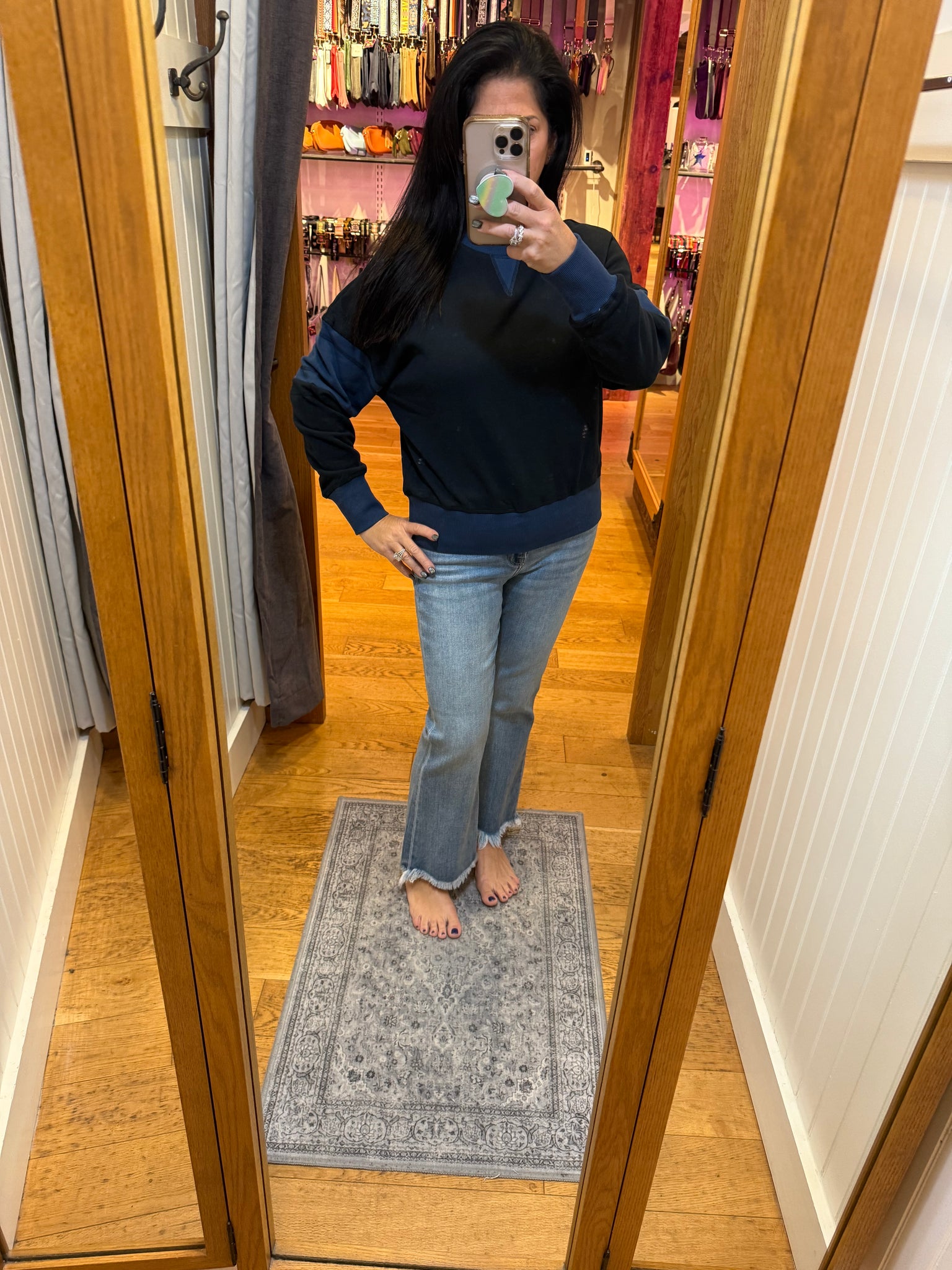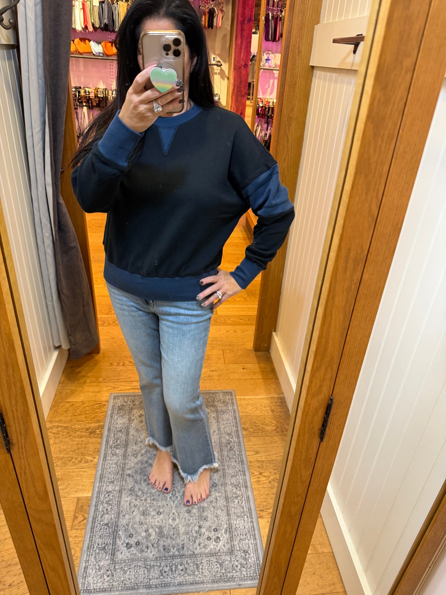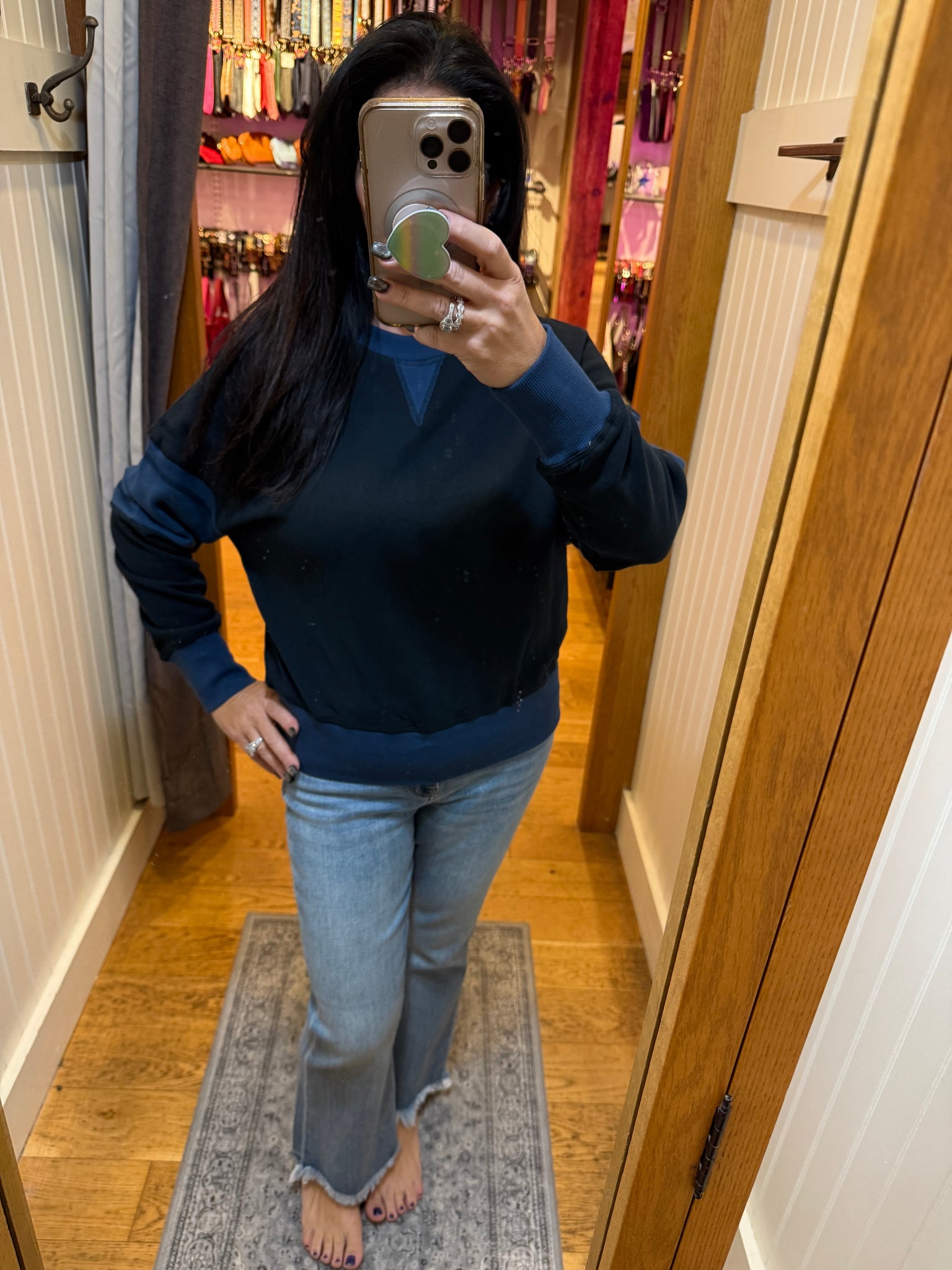 Varsity Colorblock Fleece Crewneck - Deep Navy