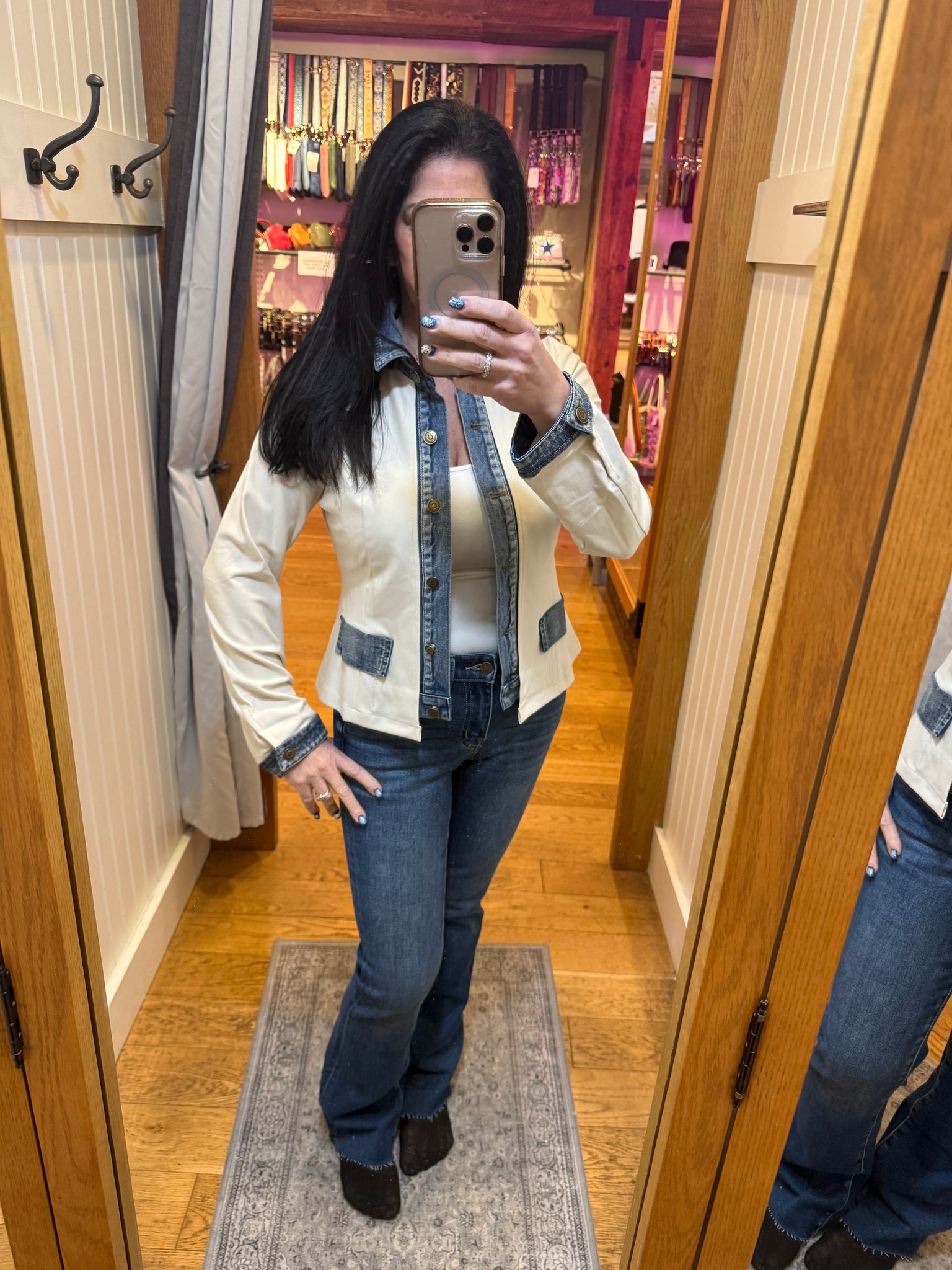 Layered Look Denim Trim Knit Jacket - Ecru or Black