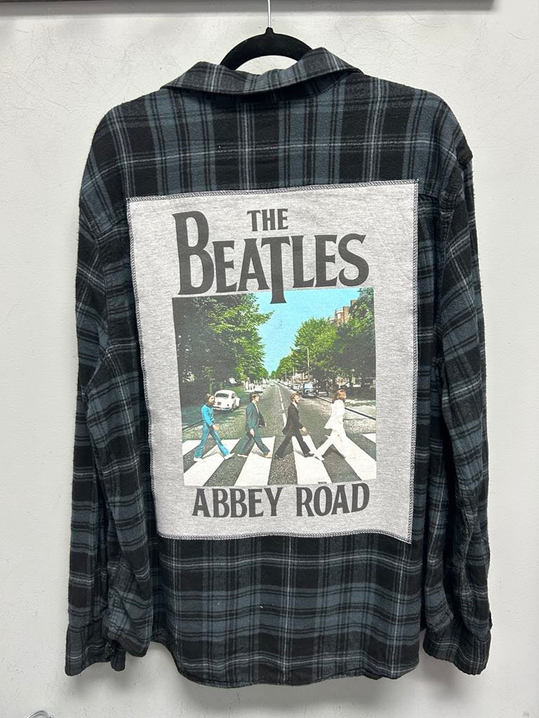 One of a kind hand bleached rock band flannel - 3XL (54-56)