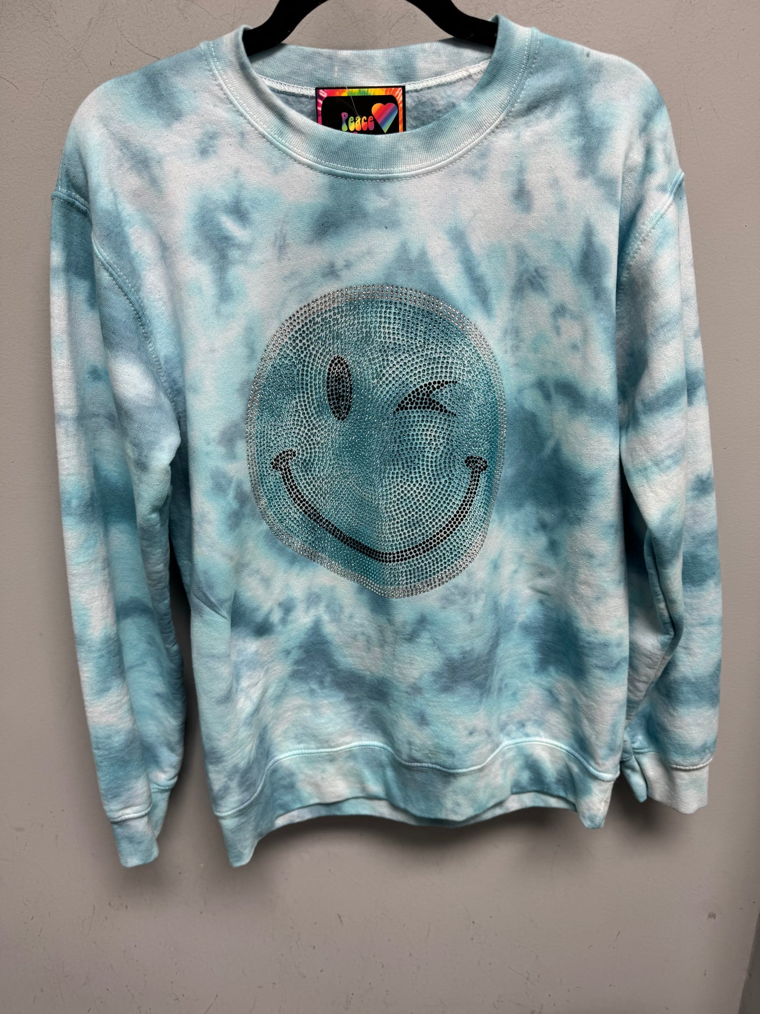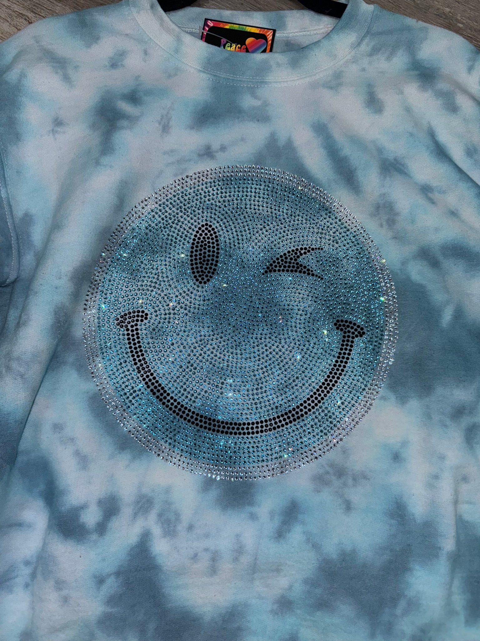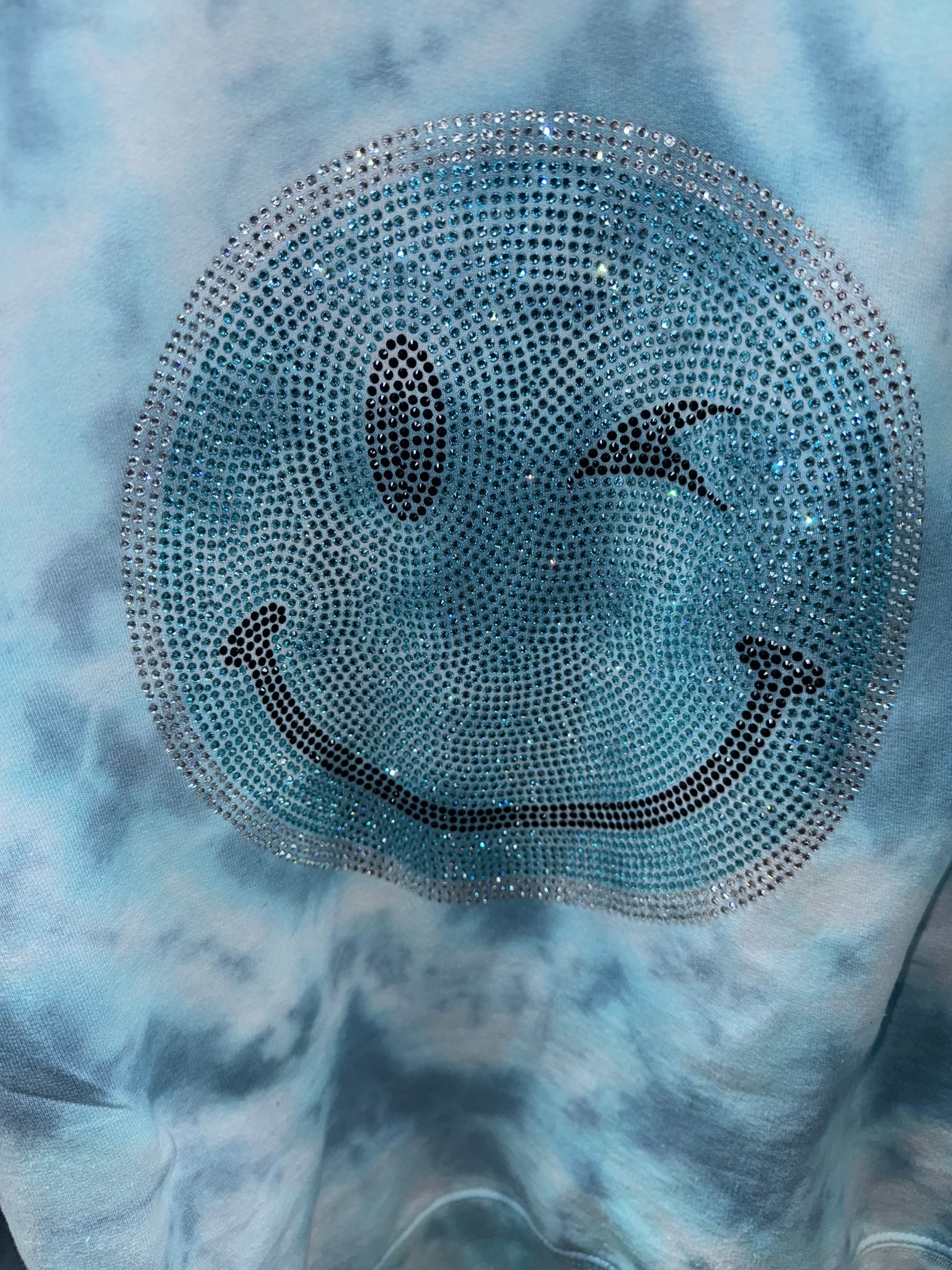 Bling Smiley On Evening Blue Tie Dye Pullover