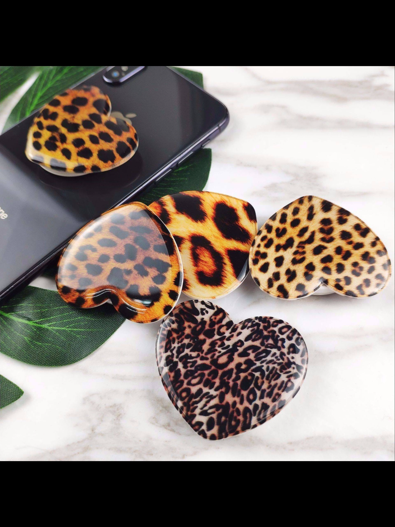 Leopard Heart Phone Pop Sockets - Assorted Colors